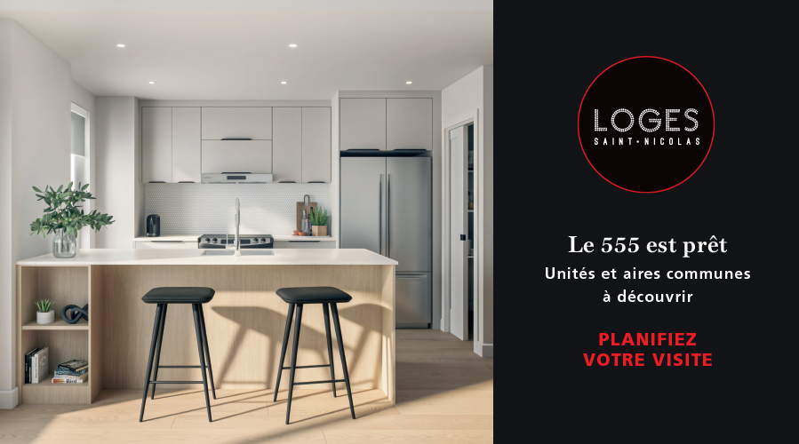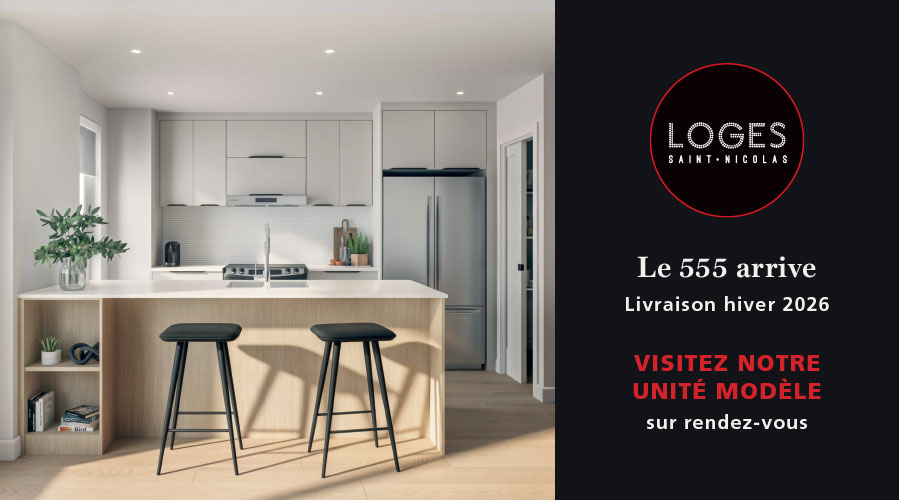 Loges Saint-Nicolas offrira à terme plus de 800 condos locatifs haut de gamme pour tous les types de famille. Que vous viviez seul, en couple, avec des enfants ou avec un animal de compagnie de moins de 20 lbs, vous trouverez le condo qu’il vous faut parmi nos modèles de studio, 3½, 4½ et 5½, avec ou sans bureau.